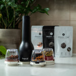 se kterými si běžné mlýnky neporadí. Díky uzavřenému nerezovému strouhacímu disku je mletí bezpečné, efektivní a naprosto bez rizika poranění prstů jako u klasického struhadla. Pod je plně kompatibilní se všemi mlýnky FinaMill a přináší rychlé, pohodlné a hygienické zpracování tvrdých surovin jako je celý muškátový oříšek, tyčinky skořice, hořká čokoláda nebo tvrdé ořechy. Dokonalý základ každé snídaně!