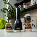 Maxi dárková sada FinaMill – matný černý dobíjecí mlýnek se čtyřmi zásobníky a podstavcem