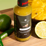 Složení: Jalapeño papričky v nálevu (papričky Jalapeño, voda, cibule, kvasný ocet, sójový olej), drcené tomatillo rajčata, limetková šťáva, zelený Kampotský pepř v solném květu (3%), bílý mletý Kampotský pepř (2%).