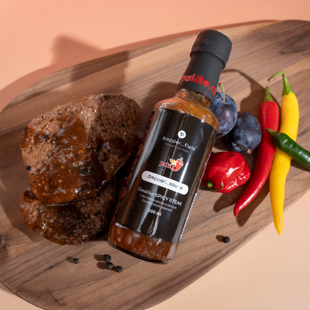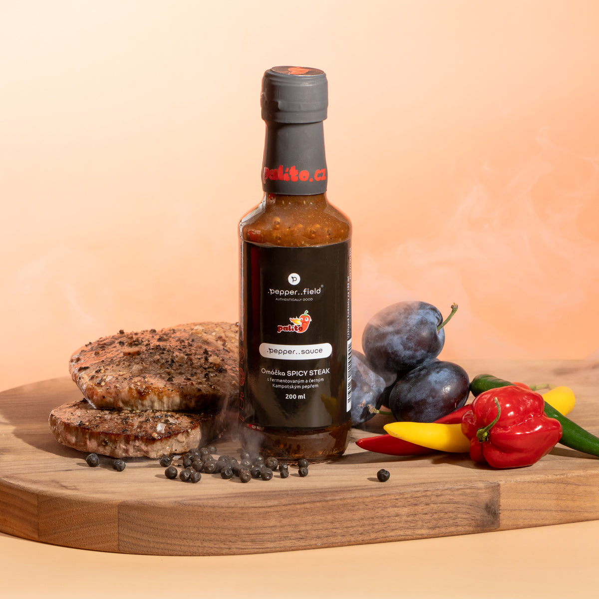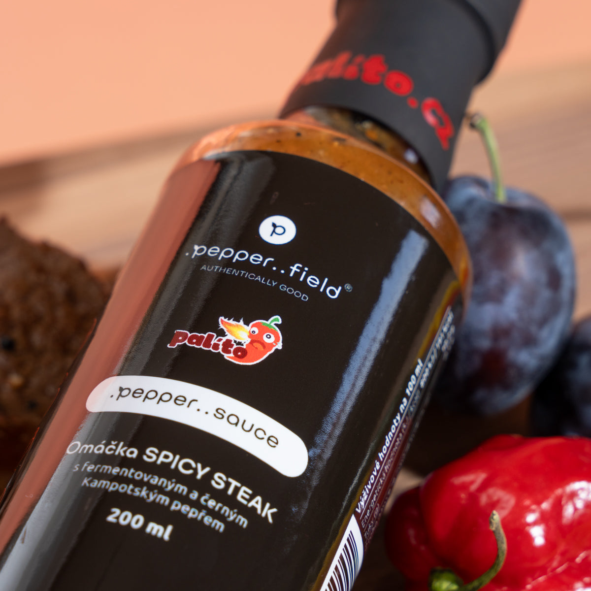 Omáčka SPICY STEAK s fermentovaným a černým Kampotským pepřem.