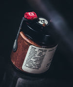 Zemitá chuť ořechů, kterou doplňuje jemnost čokolády a svěžest jahod, to je naše mandlové máslo s tmavou čokoládou. K již tak dokonalé kombinaci chutí jsme si navíc dovolili přidat špetku červeného pepře, který přidává rozvernou palčivost v doprovodu ovocných tónů.