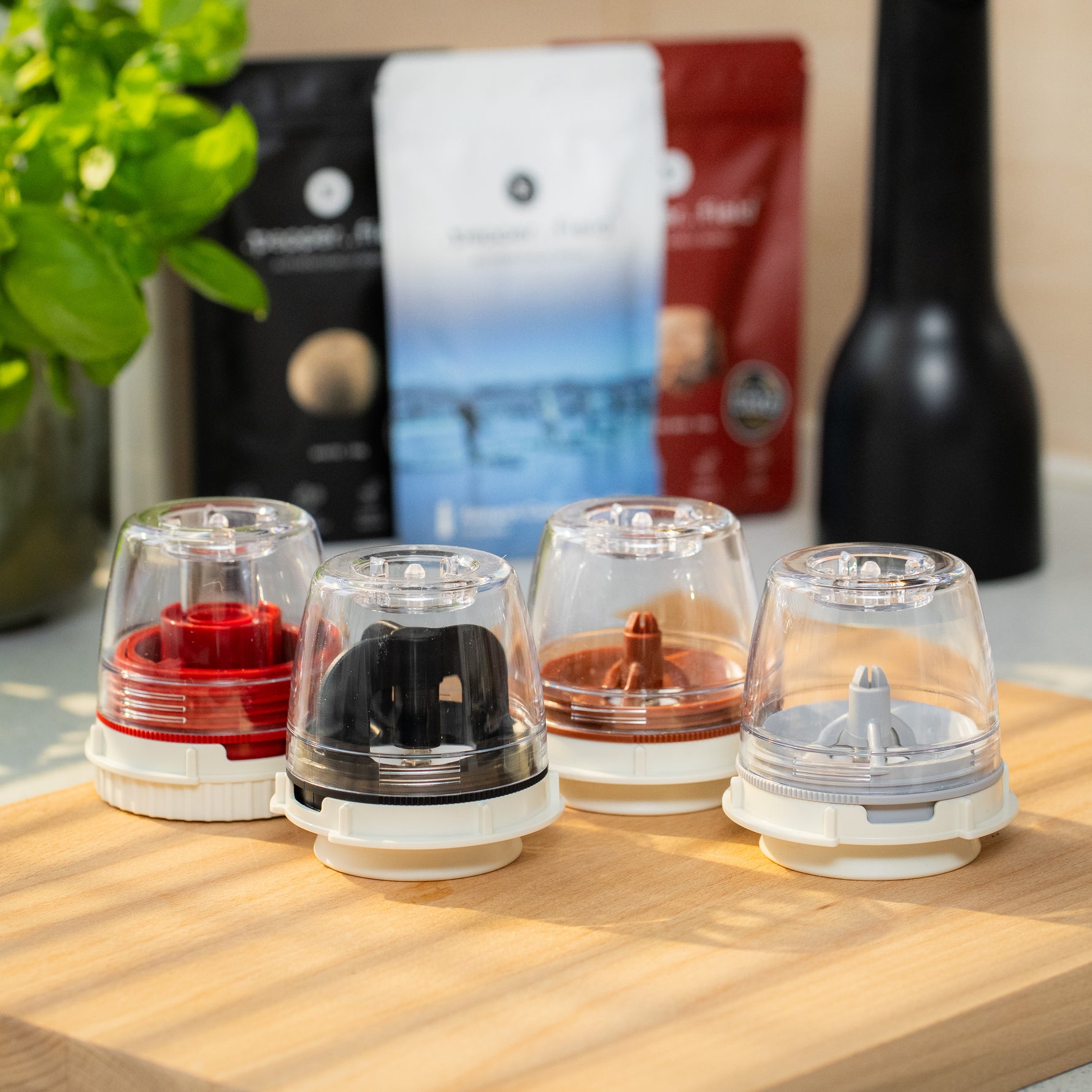 Každý typ zásobníku je vhodný na něco jiného – od pepře, soli a koření až po kávová zrna nebo čokoládu.