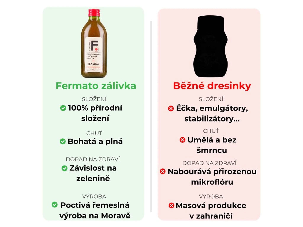 Fermentace potravin zlepšuje jejich stravitelnost a dodává jim typickou návykovou chuť umami (známou jako tzv. přírodní glutamát). Chuť umami je často to, co dodává jídlu největší šmrnc. Základem mnoha výrobků značky Fermato jsou rajčata (odtud také název značky FERmented toMATO - česky: zkvašené rajče).
