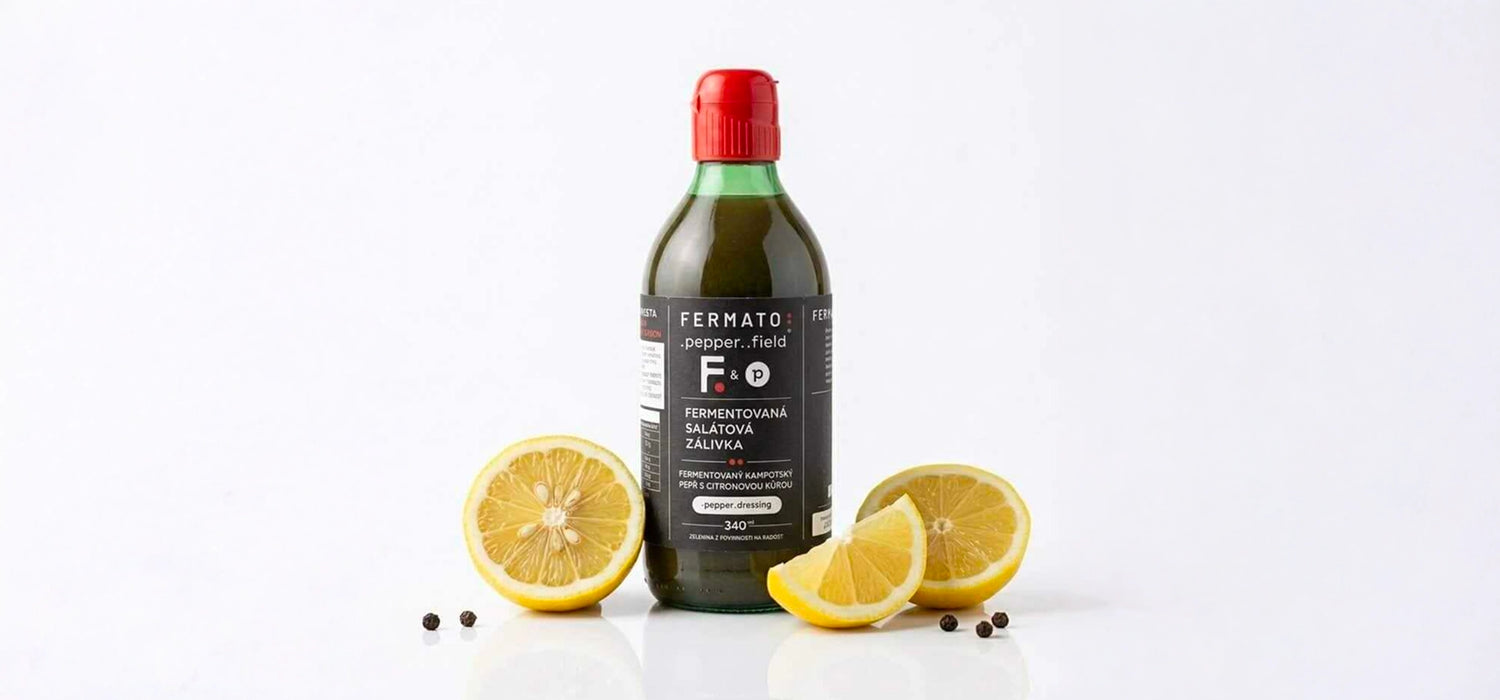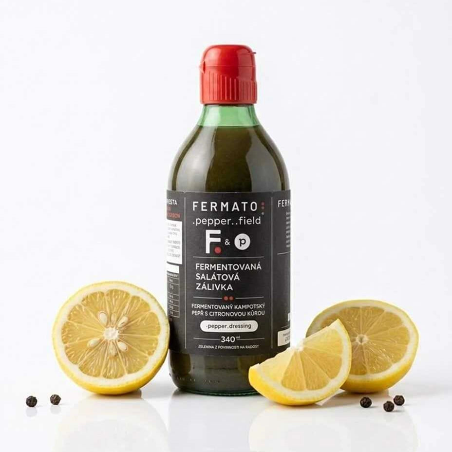 Fermentovaná salátová zálivka s příchutí fermentovaný Kampotský pepř s citronovou kůrou