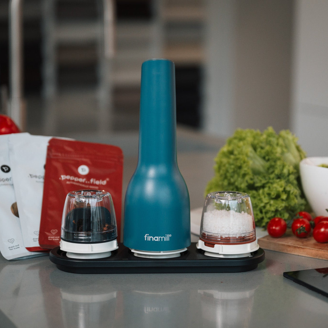 Snadno s ním namelete všechny nejen naše pepře, ale i sušené bylinky, oříšky nebo chilli. Stačí rychle přecvaknout FinaPod a můžete libovolně střídat jednotlivé Kampotské pepře! Bez námahy si poradí dokonce i s tvrdšími surovinami, jako je muškátový oříšek, skořice nebo kardamom. Stačí jedno stisknutí – a začíná nová chuťová kapitola ve vaší kuchyni. Nejvíce jej oceníte přímo na kuchyňské lince, kde chcete mít při vaření vše čerstvě dochucené - jednoduše, jednou rukou, se všemi pepři či kořením pohromadě.