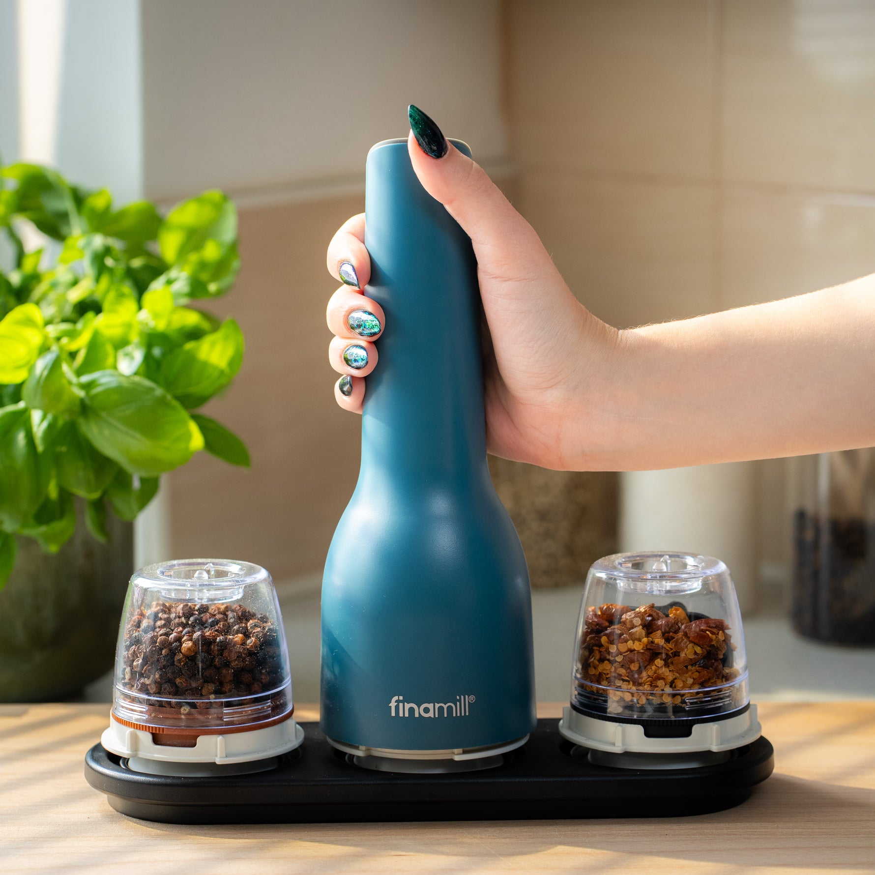Dárková sada FinaMill – matný modrý dobíjecí mlýnek se dvěma zásobníky