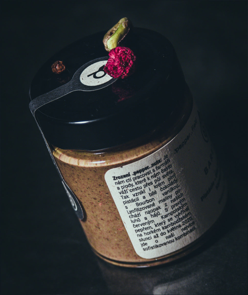Odpovědí je toto máslo, které v sobě kombinuje chuť pistácií, Kampotského pepře a malin z českých hájů. Ty dodávají zemité chuti pistácií tu správnou svěžest, kterou podtrhuje palčivá chuť červeného pepře s jeho ovocnými tóny.